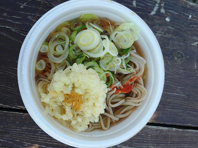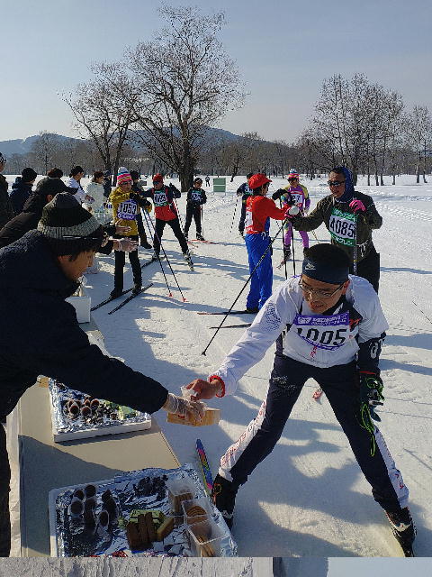 ゴール後はかきあげ蕎麦とお汁粉、そして牛乳と特別純米「湧別」酒粕の甘酒。