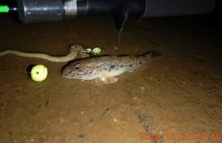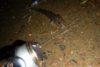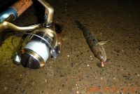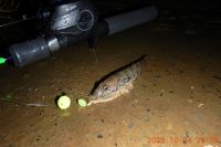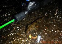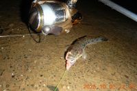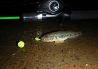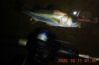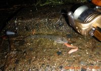 10月3日 立田大橋下流 ・一宮市の横超さん。 ・マハゼ16cm頭、4匹。 ・石ゴカイ。 ・21時からの釣り。(夜釣りに挑戦) |