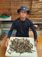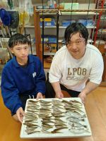 10月20日 マハゼ調査 ・岬の息子。 ・マハゼ16cm頭、148匹。 ・小セイゴ。(リリース) ・石ゴカイ。 ・午前10時頃から2時間半程の釣り。 《メモ》 ・4時間程時間が空いたため、急きょ釣行しました。 ・目的は、マハゼ調査&今月の中スポ投稿のためです。 ・今回も息子に釣ってもらい、私はアドバイス役に回りました。 ・最初、立田上流のポイントに向かいましたが先行者。 ・移動した立田下流のポイントでも先行者。 ・ちなみに、どちらも当店常連さんで順調にマハゼを釣り上げてみえました。 ・周辺に入るポイントもありましたが、のんびり釣りをされている常連さんの邪魔をしたくない&息子に集中して釣ってもらいたいという理由から再びポイントを移動しました。 ・調査対象を木曽川から揖斐川(油島)へと変えました。 ・午前10時頃、釣り開始! ・息子にとっては初めてのポイントだったので、簡単にポイント説明をして好きに釣ってもらいました。 ・まずは、延べ竿(4.5m)で脈釣りをしました。 ・干潮前の時合いということで、開始からアタリがありました。 ・コンスタントにアタリがあるものの、小型が多かったためちょい投げへと変更。 ・その位置では、平均サイズが一気にアップ。 ・置き竿2本で入れ食い状態に! ・ほぼ、空針はなかったです。 ・潮が緩んだ終盤30分程は、手持ちで小気味よいマハゼの抵抗感を堪能していました。 ・13時頃までに帰宅しないといけなかったため、12時30分頃に納竿しました。 ・納竿時もアタリは続いており、そのまま続ければまだまだ釣れる勢いでした。 ・まだ浅場も含め、マハゼが全体的にいる印象でした。 ・ちなみに、周りで数回ボイルを見かけました。 ・近いうちに、マダカも調査予定です! |
