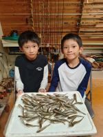 10月11日 立田上流 ・北名古屋市の小島遼仁さん、宏俊さん。 ・マハゼ14cm頭、114匹。(アタリ多い) ・チチブ3匹。 ・石ゴカイ。 ・お昼前から夕方にかけての釣り。 |