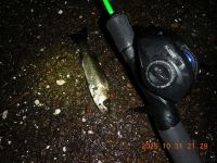 10月24日 立田大橋下手 ・一宮市の横超さん。 ・マハゼ3匹。(夜釣果) ・青イソメ。 ・21時から翌0時までの釣り。《夜釣りに挑戦》 |