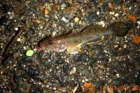 10月7日 立田大橋下流 ・弥富市の岩城さん親子。 ・マハゼ14cm頭、20匹。(他にも数多くのアタリあり) ・ウグイ。 ・石ゴカイ。 ・午後2時頃から、短時間の釣り。 |