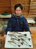| 《メモ》 ・藍理さんの登場です。 ・木曽三川のエビ釣りやマハゼ釣りなど、いろいろと楽しまれています。 ・今日は、今絶好調のマハゼを狙ってお出かけ下さいました。 ・今回穴釣りに挑戦したいとのことで、揖斐川のブロック周りのポイントをご紹介しました。 ・藍理さんにとって、穴釣りは初挑戦となります。 ・干潮にかけてを狙いました。 ・まずは、ブロックの外回りから釣れだしたそうです。 ・1時間程、コンスタントにアタリをもらったそうです。 ・11時頃から30分程アタリが散漫になったため、その時間にランチタイムとしたそうです。 ・そして、11時30分から第2ラウンドスタート。 ・今度はブロックの外回りではなく、内側でアタリが出だしたそうです。 ・マハゼがいる穴、いない穴がはっきりしていたそうで、いる穴の周りで数多くかたまっている感じだったそうです。 ・1時間30分弱マハゼとのやり取りを楽しみ、本日は大満足の餌切れ納竿となったそうです。 《店主から》 ・帰りにお立ち寄り下さり、ありがとうございました。 ・穴釣り初挑戦、お疲れ様でした。 ・やりましたね! ・見事、マハゼゲットですね。 ・透明感のある綺麗な魚体のマハゼが釣れましたね。 ・また、丸々太っていてコンディションも良いですね! ・17cmを筆頭に良型揃いということで、マハゼの引きを堪能できましたね。 ・延べ竿を使用したこともあり、より引きの強さを感じたと思います。 ・マハゼのいる穴、いない穴がはっきりしていたとのことで、この時期の穴釣りの特徴がはっきりでていましたね。 ・それをしっかり見付け釣果につなげたこと、時合いに効率よく釣り上げたことは本当に素晴らしいと思います。 ・初挑戦とは思えない釣りを展開し、将来が楽しみな釣りガールですね。 ・多くの木曽三川マハゼファンもビックリしていると思います。 ・今後はポイントの移動はあれど、年内は川筋の陸から楽しむことができます。 ・もしかすると、条件次第では年明けも楽しめる可能性も! ・今後の冷え込みでさらなるサイズアップも見込めるので、またお時間ができましたら数&サイズアップに挑戦してみて下さい。 ・次回のご来店、心よりお待ち致しております。 |
