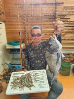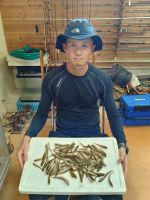 9/8 | 9月8日 立田下流 ・岩倉市の富田浩次さん。 ・マハゼ16cm頭、90匹。(他にも数多くのアタリあり) ・ウナギ57cm。 ・セイゴ。(飲み込まれていないもの、リリース) ・石ゴカイ&青イソメ。 ・13時から21時頃までの釣り。(最初の2時間は、シジミ採り) |