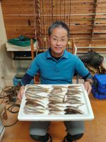 《メモ》 ・久しぶりの登場、前田さんです。 ・お子様にはちょくちょく登場して頂いていましたが、前田さんは本当に久しぶりです。 ・木曽三川での釣り&沖釣りを楽しまれているお客様です。 ・今日は沖が波で出船できなかったため、木曽三川へお出かけ下さいました。 ・狙いは、今絶好調のマハゼです。 ・ホームグランドの1つである立田下流での挑戦です。 ・ちょい投げ&脈釣りでの挑戦です。 ・最初に向かったポイントでは、干潮で周辺全体が浅かったそうです。 ・小型も多かったことから、そこから少し下流の深みに隣接するポイントへと移動しました。 ・そこでは、平均サイズが良く、コンスタントにアタリがあったそうです。 ・またブロック周りを探り釣りすると、ヒネハゼ級も掛かったそうです。 ・今日ものんびりと楽しい釣りになったそうです。 《店主から》 ・帰りにお立ち寄り下さり、ありがとうございます。 ・また久しぶりの撮影、ありがとうございました。 ・やりましたね! ・見事、マハゼゲットですね。 ・透明感のある綺麗な魚体のマハゼですね。 ・木曽川マハゼ、最高ですね! ・そしてなんと言っても、平均サイズが良いですね。 ・浅場は10cm前後が入れ食い状態ですが、深場に隣接する浅場はサイズが良いですね。 ・またそこに隣接する掛け上がりには、ヒネ級もいますね! ・まだ水温の高い時期からこのサイズならば、11月以降はさらに凄いことになりそうですね。 ・今日の釣果(平均サイズが良い&ヒネハゼ)は、多くの木曽三川マハゼファンに朗報になったと思います。 ・ポイント選択がハマり、さすが常連さんといった釣果ですね。 ・この勢いで、次回はさらなる数&サイズアップですね。 ・またお出かけ下さい。 ・次回のご来店、心よりお待ち致しております。 |
