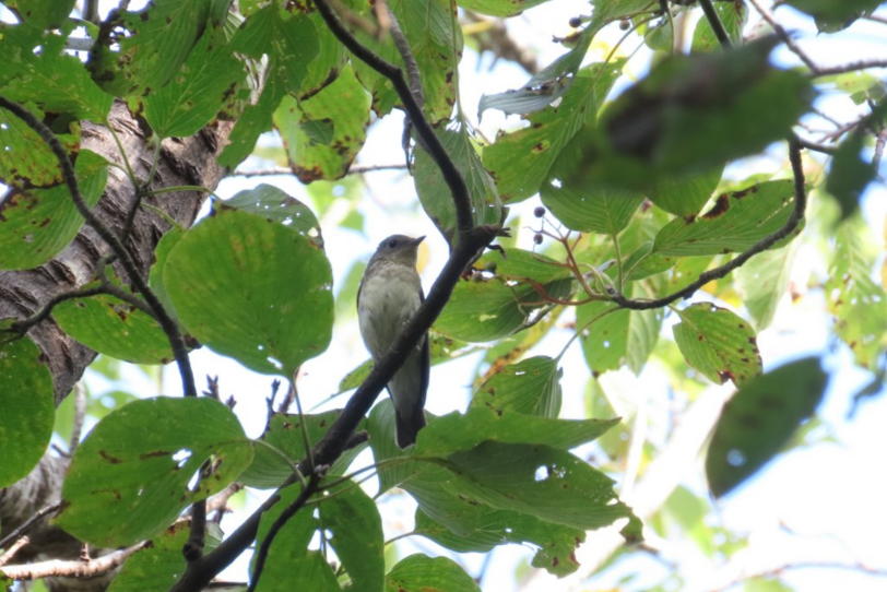 8時半から10時半前まで鳥見。朝水場でエゾビタキを観察でき、またもみじ休息所付近には混群が居てその中にキビタキも居ました。が、オスは残念ながらお腹しか撮影できませんでした。他にはエナガ、シジュウカラ、アオゲラ、メジロ、コゲラ、ヤマガラなど。