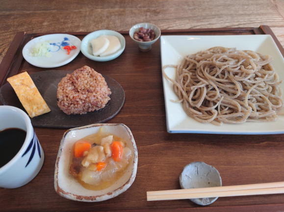 そばランチ (もりそば・酵素玄米おにぎり・小鉢・コーヒー) 1450円