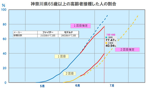 10月末頃には、2回目の接種を終える人の割合は、70%に達しそうな感じです。まだまだ先ですが、この頃にはコロナは収束していると思います。これまでの辛抱。
