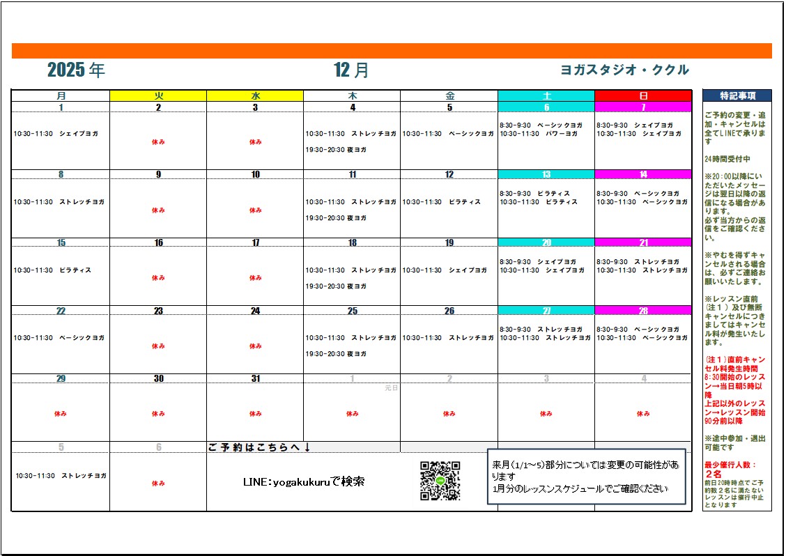 【レッスンスケジュール 月別】