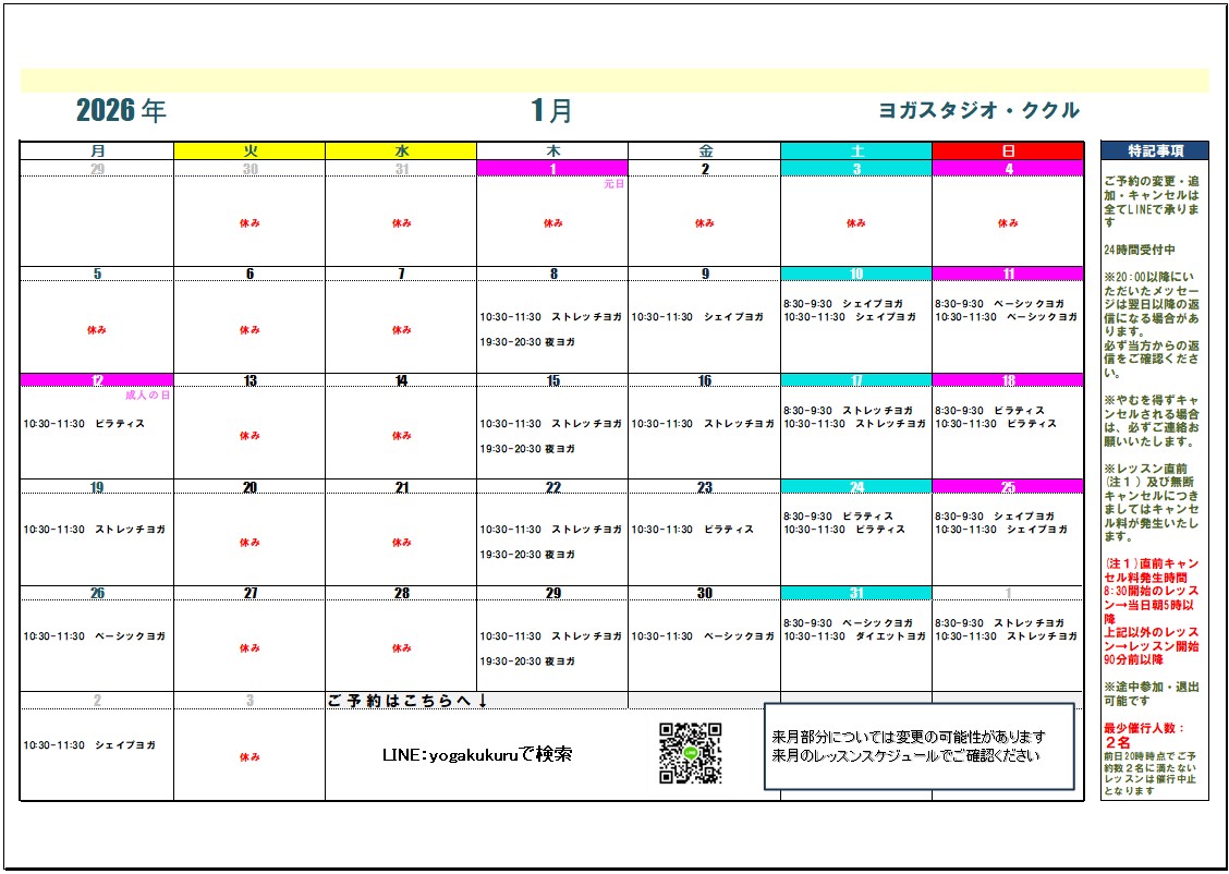 ストレッチヨガ、ピラティス、ベーシックヨガ