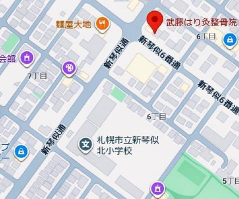 当院は、バス通りでもある「新琴似6番通り」に面しています。