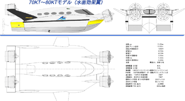 モデル2:本格的に水面効果を利用した高速80KTモデル。 本格的に飛行制御と推進装置を開発