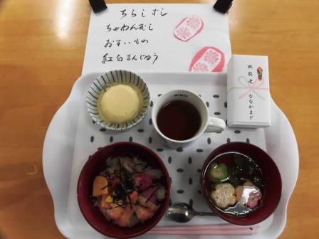 6月15日(日)この特別な日に日頃の感謝の気持ちを込めて、ささやかながら父の日のメニューとして、ちらし寿司、ブロッコリーとかぼちゃのサラダ、海老しんじょうのおすまし、プリンアラモードをご用意させていただきました。これからも安心してお過ごしいただけますよう、スタッフ一同尽力してまいります。