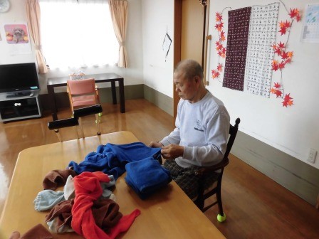利用者さん同士で折り紙、トランプなどを楽しんだり、スタッフと一緒にお散歩したり穏やかな日々を過ごしています。 小規模の皆さんとボランティアさんの活動に参加することもあります。
