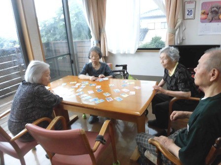 毎週木曜日の午前中に二名のボランティアさんが来て下さっています。今の流行は、神経衰弱と七並べ、そしてクイズです。皆さん、真剣で、夢中で、楽しそうな笑い声が、リビングいっぱいに響いています。いつもありがとうございます。