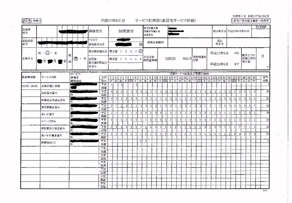 自画自賛ですが、居宅サービス計画表より自作のエクセルで作成した予定表が役立ちました。