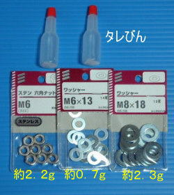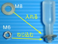 タレびんに、M8ワッシャーとM6サイズナットをねじこむ。