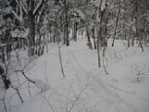 さて、当初予定のルートに入りしばらく進むとやがて峠に達し、そこから南~南東尾根に取り付く。(峠のところに雪に埋もれた檻のようなものがあり、「キケン」の看板がついていたが、なにかの動物を