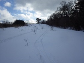 先週に引き続いて冠高原。ただし今回は妻と一緒のスノーハイキングなので、鬼ヶ城山は目指さない。834ピーク南西の雪原を散策。スピードも緩めの小散歩だが、それだけでも冠高原はいい所だし、