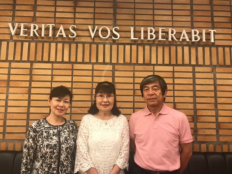 それぞれのお年の方も皆さま懐かしいと喜んで頂き、 昔の東京文化学園の森本厚吉先生・静子先生の厳しさの中にも優しさがあったとの貴重なお話し、 楽しい懇談のひと時を過ごし、校歌を合唱し、記念写真を撮り散会致しました。