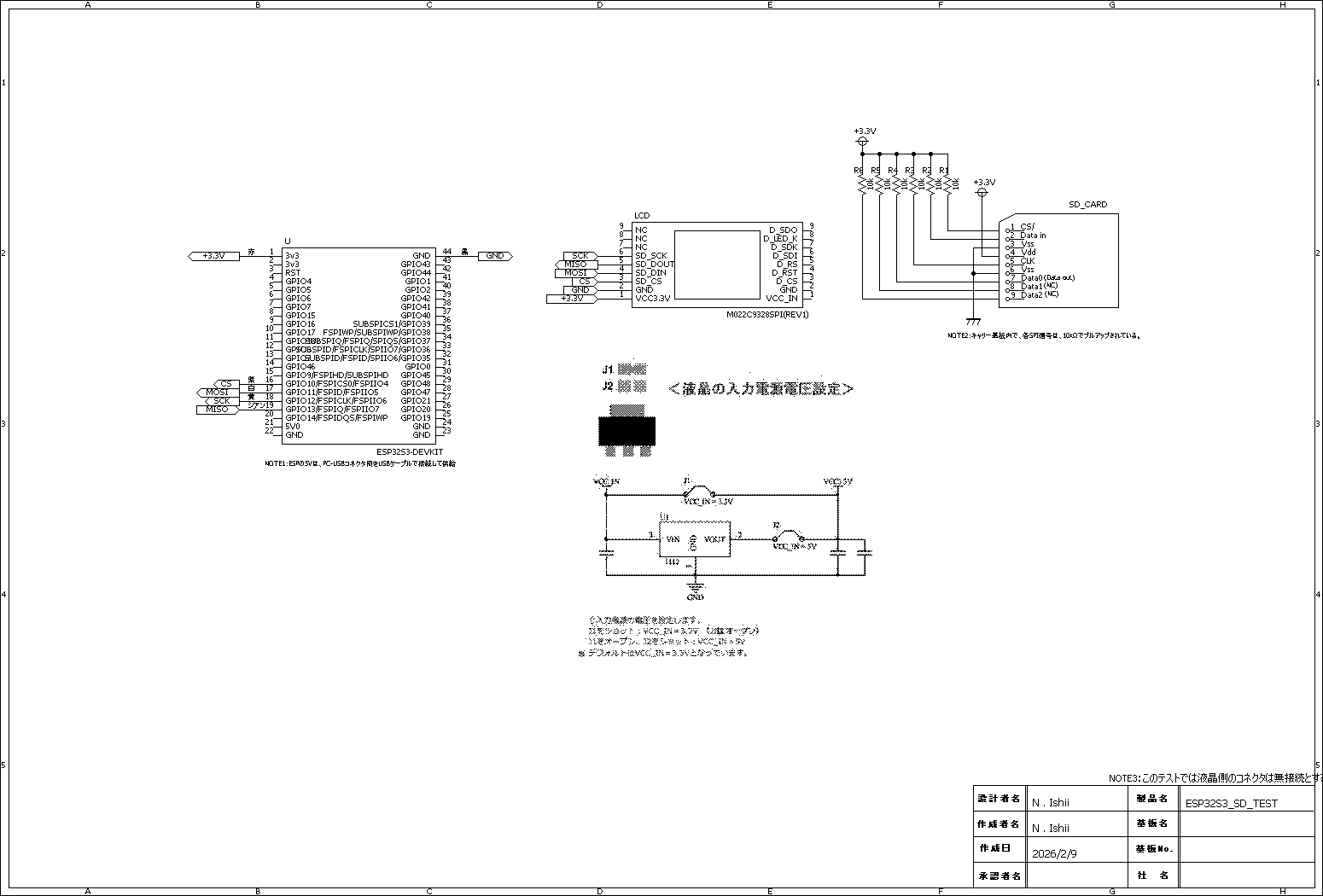 ・こちらからどうそ→ ESP32S3_SD_TEST回路図 (SDのみ接続)