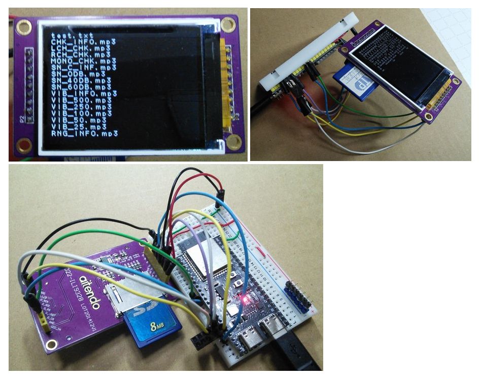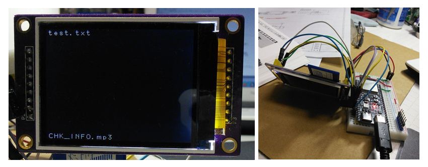 (シリアルモニターにSDカード内のファイル名リストを表示するテストと液晶に内容表示するテスト)