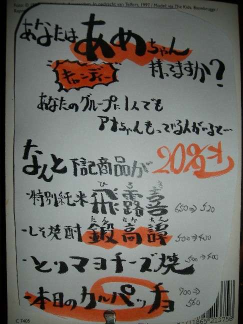 路地裏のハッピー製作居酒屋「ハネハネ居酒屋のり吉くん神戸店」にて、
