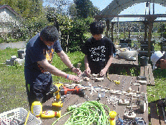 工作の後はタケノコ掘りをやりました。基地の竹藪にはタケノコが一杯。良いのが掘れました。
