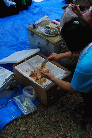 和さんとY内さん,S藤さんはバーベキューの準備に活躍。お昼に合わせて準備万端。