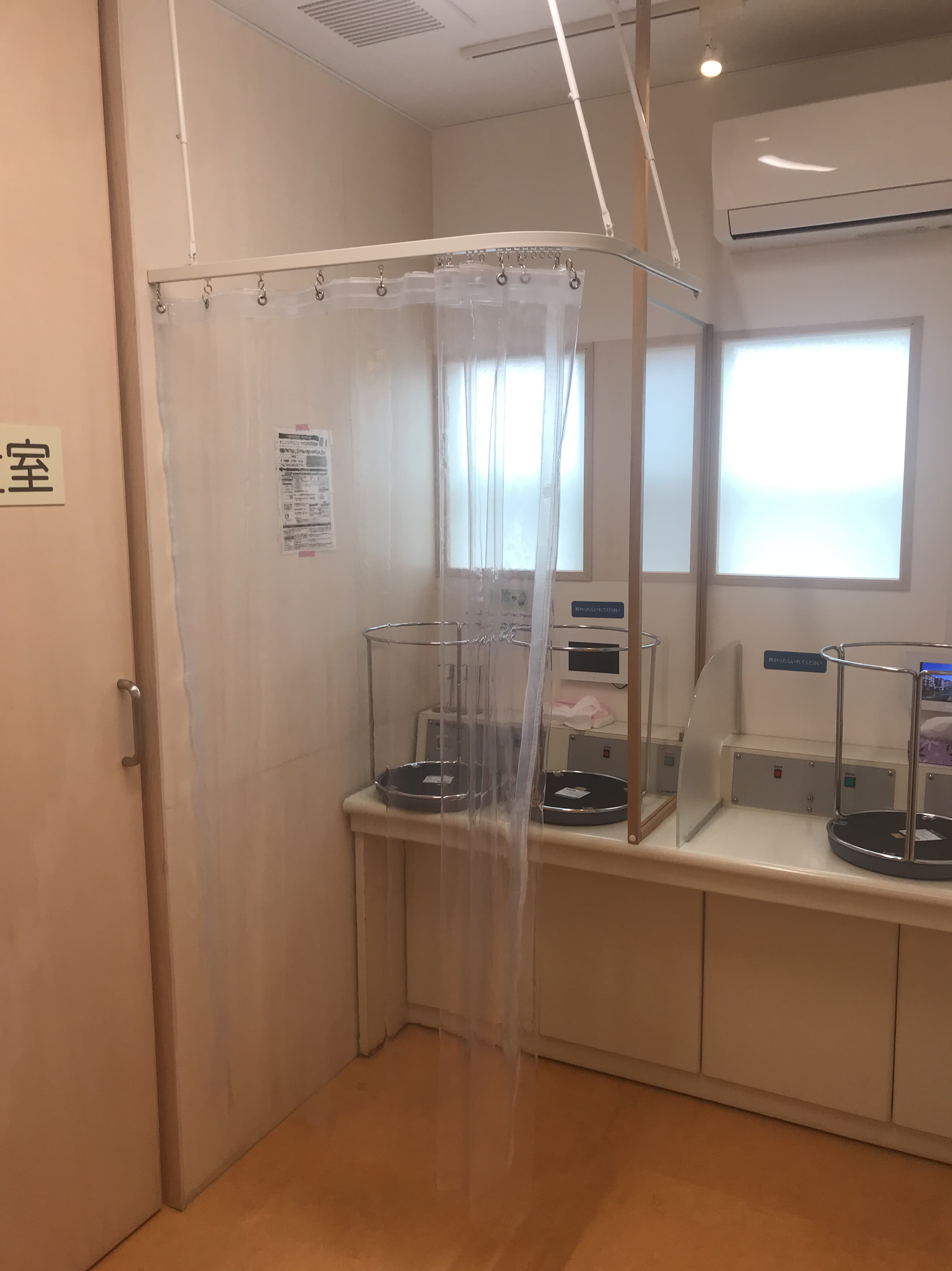 ネブライザーは天井に換気扇をつけ、カーテンで個室化しました。