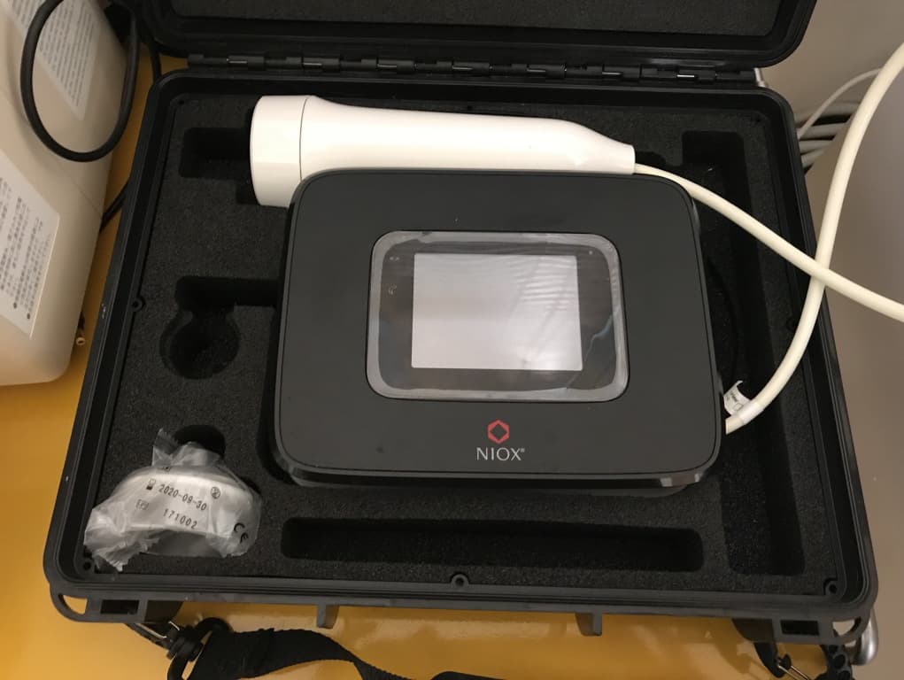 気道粘膜上に起こる好酸球を介したアレルギー性炎症から発生するNOガスを測定することにより、喘息の発見に役立てることができます。