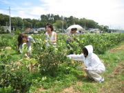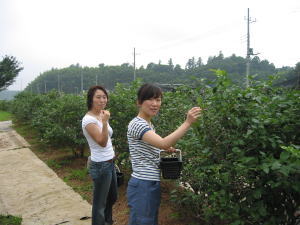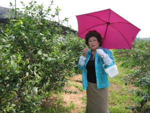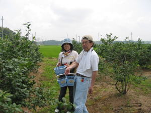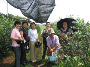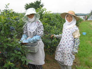 直売するためのブルーベリー収穫 ・・・一粒一粒熟したものを摘むので とってもめんどうなんです。 |
