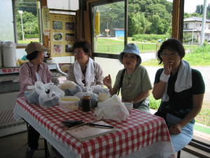 | うちのしげ子さん(右側)と近所のよしいさんも助っ人に 駆けつけてくれました。 |