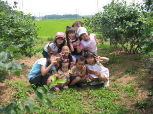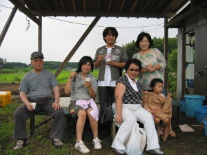 | 06・6・24(土)に来られた皆さんです。梅雨の合間の晴れでしたが、暑いながらも農園を吹き抜ける風がここちよい一日でした。 |