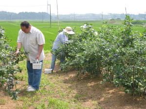 ブルーベリー摘み取り・・・平成28年のブルーベリー園は今月18日(土)開園致します。