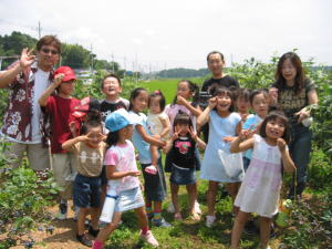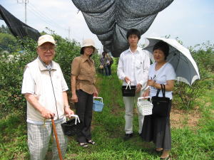 | 06・7・22/24(土)(日)に来園されたみなさんです。 曇天で蒸し暑くもなく、摘み取り日和の一日でした。休日とあって他県のみなさんも多かったようです。 |