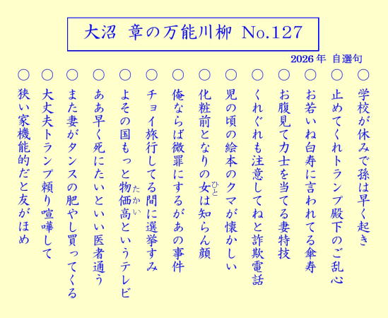 | 大沼 章の万能川柳 No.100 おめでとうございます | |