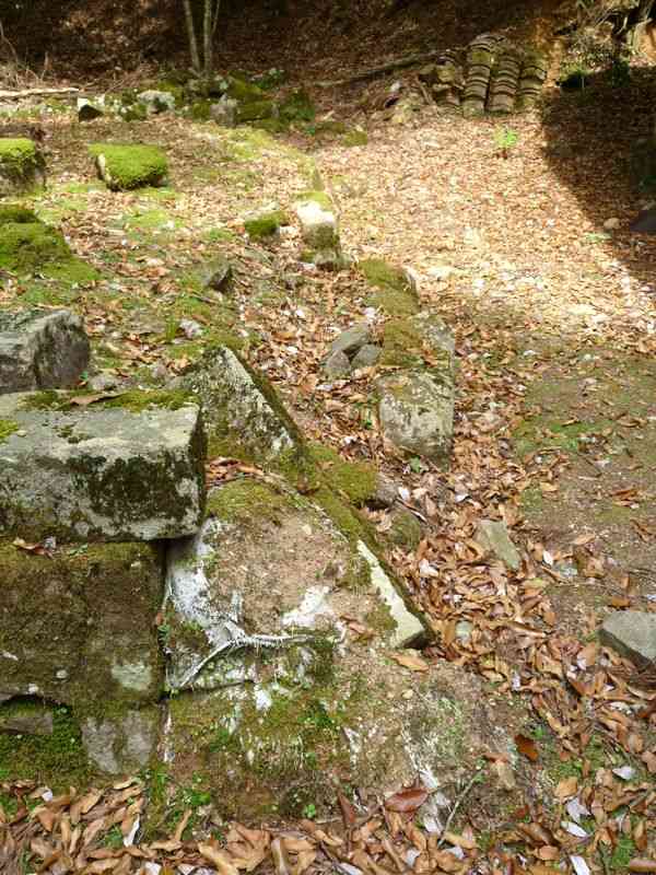 後背面(西側)では斜面から流れ落ちた赤土の堆積もあり、何も観察できない。