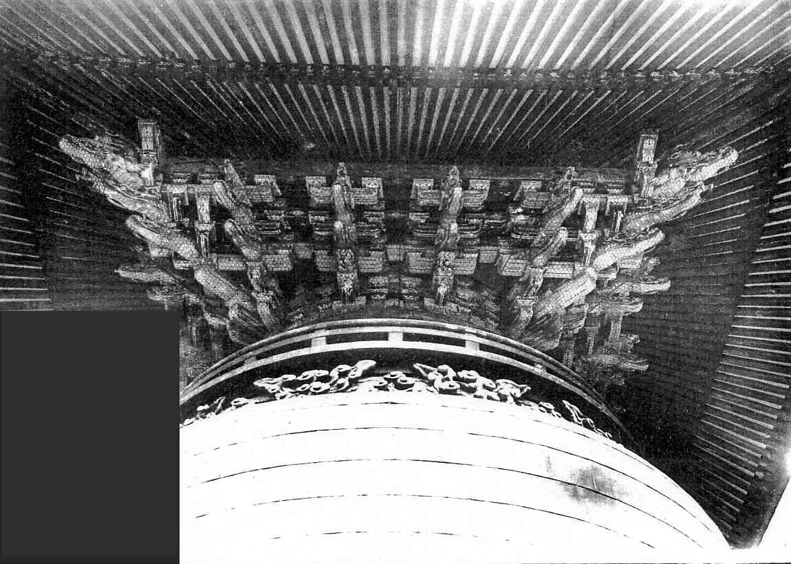斗栱は三手先、軒は初重平行垂木、2−5重扇垂木を使用。