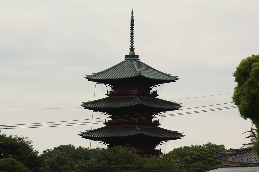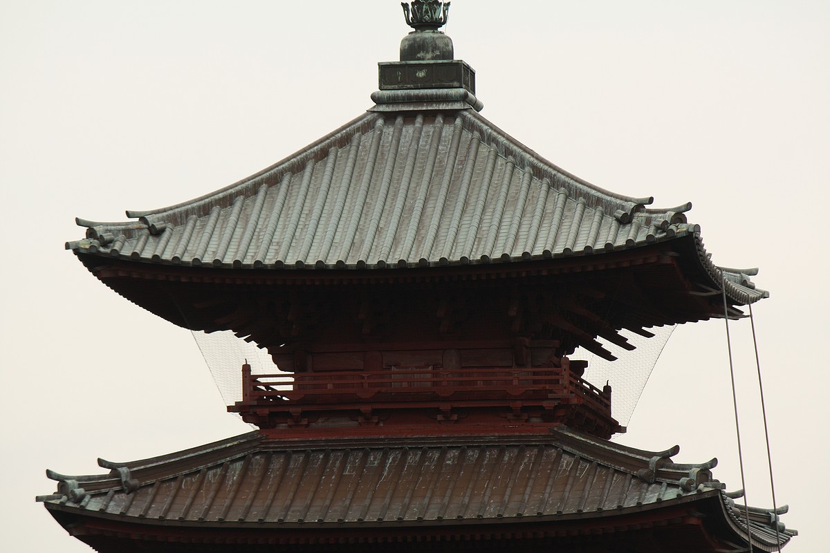 屋根は初−2重:本瓦葺、3−5重:瓦棒銅板葺。