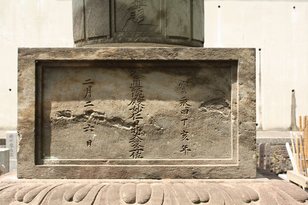 ●紀伊吉宗側室・深徳院宝塔 深徳院:紀州藩第5代徳川吉宗(後・江戸幕府8代将軍)側室、須磨(須摩)、9代将軍徳川家重生母。