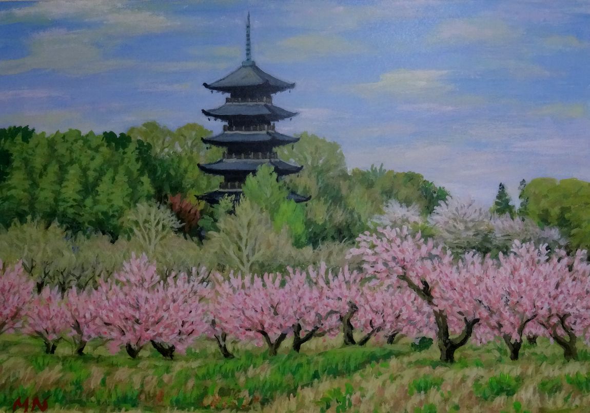 2025/11/19追加: ◆備中国分寺塔と桃畠:s_minaga蔵 備中国分寺五重塔絵画:複製:2025/09/27現地国分寺で購入