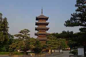 弘化元年(1844)頃完成。総高34.3m。本瓦葺。心柱は初重から立つ。四天柱を内側に仏壇を作り、五智如来を安置。三重までの材は欅を用い、四・五重は松材を主として用いると云う。