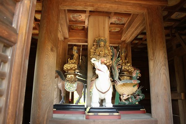 初重内部は心柱が通り、四天柱の間は須弥壇となり、金剛界四方仏の騎乗像を各面に安置する。