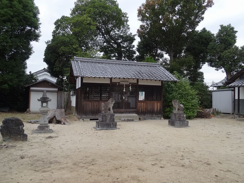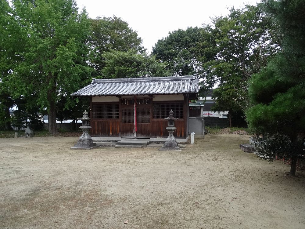 広庭正面一対の石灯籠は寛延2年(1749)の銘がある。拝殿は割拝殿で、昭和59年改築、切妻造屋根桟瓦葺き、平面3間×2間である。