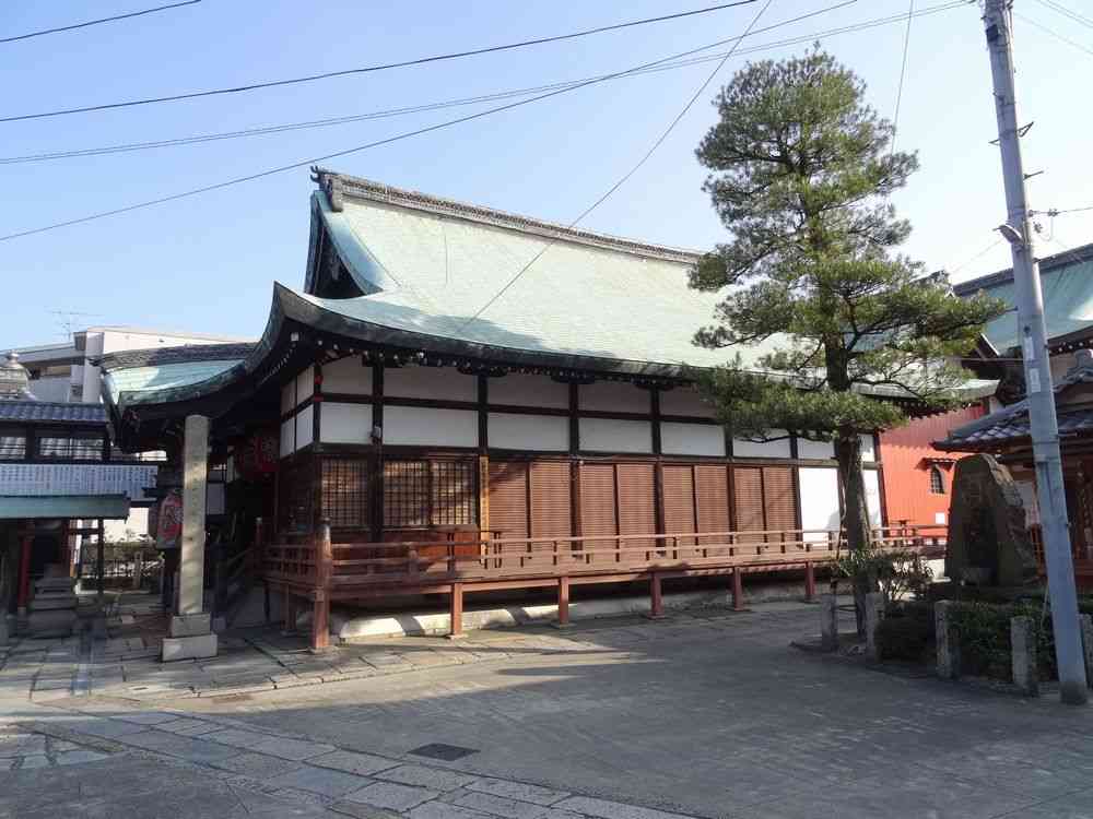 ▽推定伝法院跡:二階建建物付近が伝法院・杉の坊跡であろう。