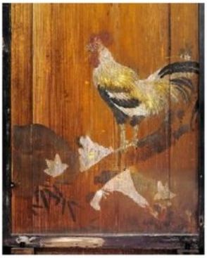 伝/伊東若冲筆鶏図:板戸に描かれた絵である。