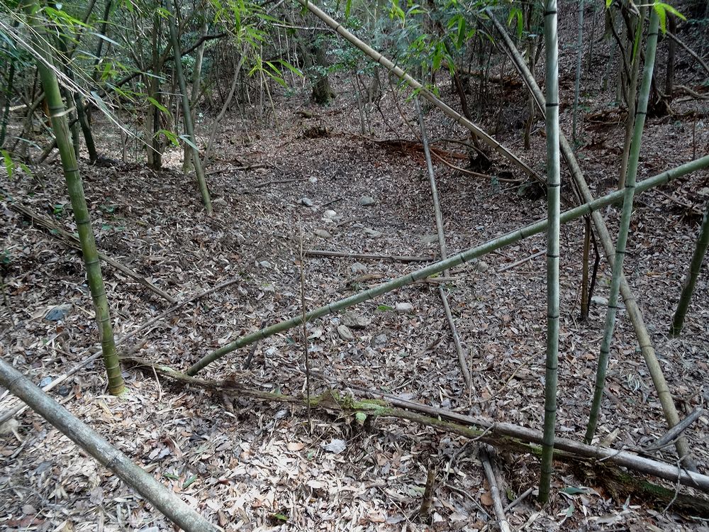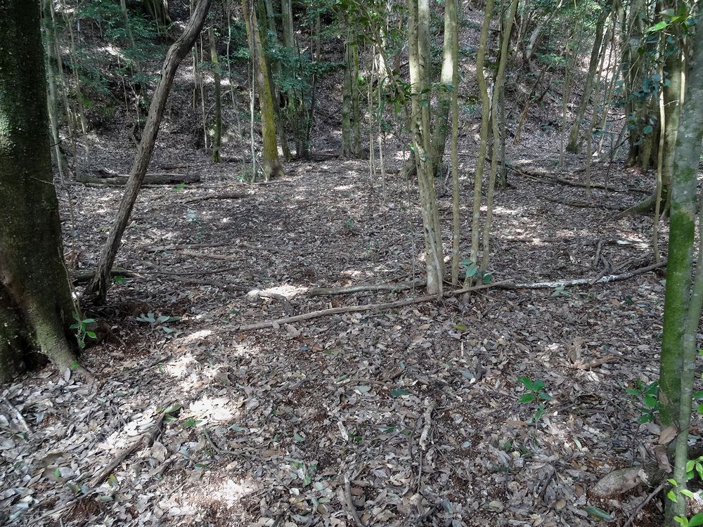 △中川寺南谷南8:南8平坦面、田畑跡と思われるも、ブッシュの為、容易には入れない。北側東谷東5の平坦面西下から撮影。
