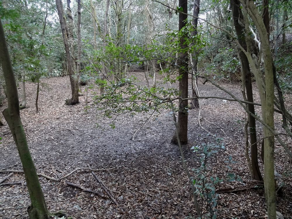 中川寺南谷南5:中央全面に写る平地が南5である。なお、左上に写るのはB地点(荒蕪地)の崖であろう。東谷東6窪地の南方丘上から撮影。