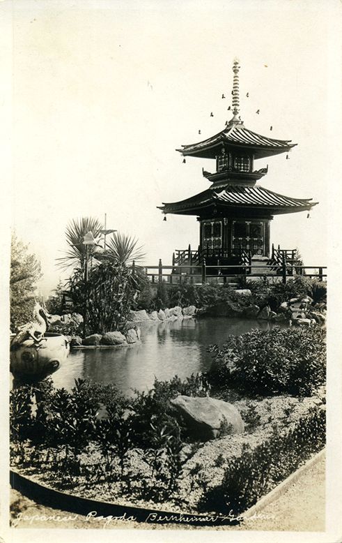 上掲の絵葉書「Bernheimer gardens pagoda」に写るPagodaはBernheimer兄弟によって、Hollywood Bernheimer邸の庭園に1914年(大正3年)頃